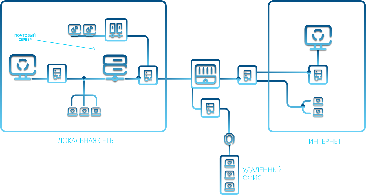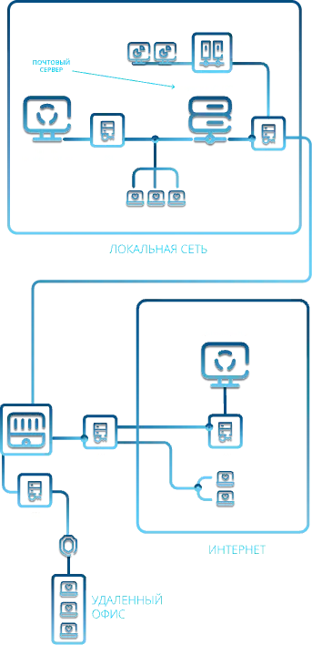 Идеально подходит для контроля федеральных сетей, удаленных офисов и сотрудников, работающих за пределами корпоративной сети.